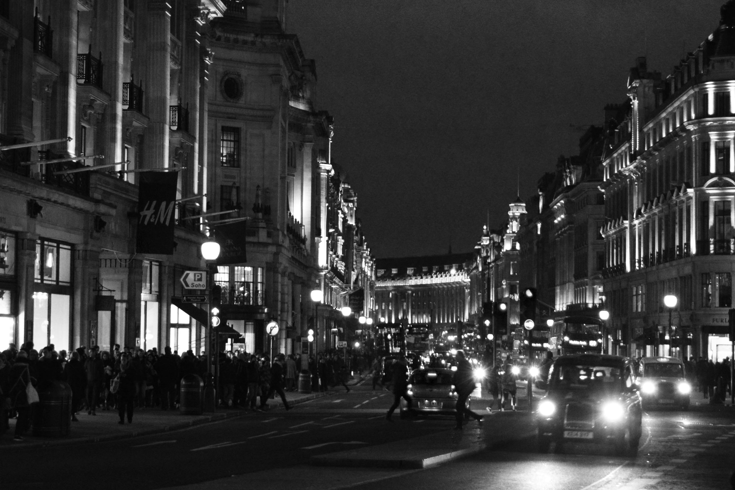 Sans doute l’endroit préféré des touristes adulateurs de shopping, Oxford street est incontournable pour les amoureux du lèche-vitrine. Toutes les grandes enseignes sont au rendez-vous, les magasins de prêt-à-porter tapissent les deux côtés de la rue, les gens se pressent sur les trottoirs, les « cab » klaxonnent et les célèbres bus rouges londoniens se croisent sous les regards de quelques objectifs de touristes soucieux de repartir avec LE cliché de Londres. Voici le Londres de la consommation, le Londres à 200km/h. L’odeur des crêpes à emporter vous taquine les narines, le chant d’une artiste de rue vous plonge au cœur d’un clip, les couples mains dans la main, portant leurs sacs et leur sourire qui vous amusent. Au bout, Picadilly Circus avec sa célèbre fontaine surplombée par l’ange Eros.